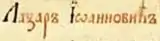 Final part of an inscription in a Gospel Book in the Lomnica Monastery[2][6]