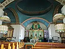 The church is built of sea stones and wood.[1] It belongs to the neoclassical style. It has two pulpits and has retained its original retablo and wood florings.[3]