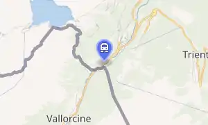 Le Châtelard-Frontière railway station (French: Gare de Le Châtelard-Frontière) is a railway station in the municipality of Finhaut, in the Swiss canton of Valais. It is located on the 1,000 mm (3 ft 3+3⁄8 in) gauge Martigny–Châtelard line of Transports de Martigny et Régions. The station is last one in Switzerland before the line crosses into France.[1]