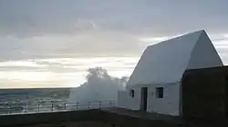 Le Don Hilton or La Cauminne à Marie Best is an 18th-century guard house and powder magazine that sits on the seawall besides Le Chemin de L’Ouzière, in Saint Peter, Jersey. It is also known as "the White Cottage" because of its whitewashed walls and vault, and its distinctive appearance makes it an informal daymark for sailors. (Admiralty Chart 1137 does not identify the building as a recognised maritime marker.[1]) Earlier names for the building include St. Peter’s Guardhouse and Magazine, the Middle Battery, and the Powder Magazine, among others. Today the National Trust for Jersey, which owns the building, calls it Le Don Hilton. The National Trust rents it out for occasions such as weddings and for overnight stays, though the facilities are minimal.