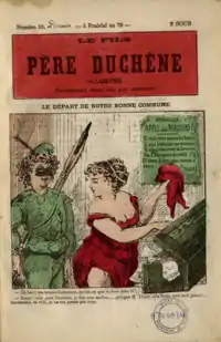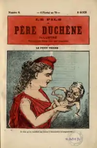 Le Fils du Père Duchêne (French: [lə pɛʁ dyʃɛːn]; "The Son of Old Man Duchesne") is the title of a newspaper which appeared during revolutionary periods of the nineteenth century. It borrowed its title from the original Père Duchesne published by Jacques Hébert during the French Revolution. After Hébert's death, the title reappeared with all sorts of variations (Old Lady Duchesne, Son of Père Duchêne, etc.) from the 1790s on, notably during the Revolution of 1848 and the Paris Commune of 1871 (in editions by publishers Eugène Vermersch, Maxime Vuillaume, and Alphonse Humbert).