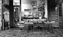 Founder Alain Coumont opened Le Pain Quotidien on 26 October 1990 at 16 rue Dansaert in Brussels.[3] As a young chef, Coumont was dissatisfied with the quality of bread available in Brussels, so he began making his own, mixing flour, water and salt into the familiar loaves of his childhood. He furnished the store with cabinets scoured from antique stores and a large table made of wood reclaimed from the floors of retired Belgian trains purchased at a local flea market: the first of Le Pain Quotidien's communal tables.[4][5]