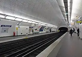 Le Peletier (French pronunciation: [lə pɛltje]) is a station on Line 7 of the Paris Métro. Located in the 9th arrondissement, it was opened in 1910. It is named in reference to Rue le Peletier, which was named after Louis Peletier, who was the last but one Prévôt des marchands de Paris (provost of the merchants of Paris) between 1784 and 1789. This feudal position was abolished in the French Revolution.