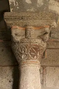 Sculpture of the tetramorph or bull, the symbol of Saint Luke, on a column in the west porch (13th c.)