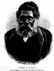 An Aboriginal man, Tommy Governor—the father of Jimmy Governor—found some interesting rocks, near what would become Mount Stewart, and showed these to Mr. George Stewart. The rocks were lead carbonate and assays showed the presence of silver. Governor was later to complain that he had not received what he thought was fair compensation for his discovery.[5][6][7]