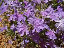 Lechenaultia magnifica, commonly known as magnificent leschenaultia,[2] is a species of flowering plant in the family Goodeniaceae and is endemic to the south-west of Western Australia. It is an erect, perennial herb or subshrub with crowded, linear to narrowly lance-shaped leaves, and pink to mauve or purple flowers.