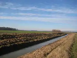 The Ledava is the largest river of Goričko and the largest tributary of the Mur in Slovenia.[2] It is 80.2 kilometres (49.8 mi) in length.[1] It originates in Austria as the Lendva Bach and first flows southeast. It enters Slovenia near Kugla Hill, the highest peak of Prekmurje (418 metres or 1,371 feet), and flows south as the Ledava. In this part of its course it forms the only gorge in Goričko. In the village of Ropoča, Municipality of Rogašovci, it flows into the Ledava Reservoir, which distinguishes itself by a variety of bird species, a variety of dragonflies, and the best preserved otter population in Slovenia. The Ledava is the only outflow from the lake. In its lower course the river flows through Murska Sobota and Lendava. It has several (mainly left) tributaries in this part, the largest of them being the Kerka and the longest Kobilje Creek. Finally, it joins the Mur next to the Croatian-Hungarian-Slovenian border near Muraszemenye.