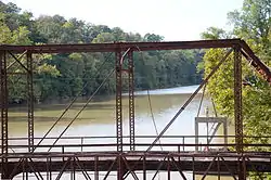 The Lee Creek Bridge is a historic bridge across Lee Creek in Van Buren, Arkansas. Now closed to traffic, it is a three-span truss bridge located west of Rena Road on the city's west side. The bridge's single Pratt through truss was built in 1898, and a pair of Warren pony trusses were erected in 1930 to replace a second Pratt truss. The trusses rest on original stone piers. The bridge has a total length of 296 feet (90 m), of which 126 feet (38 m) is the Pratt truss. The bridge was bypassed and closed in 1995.[2]