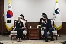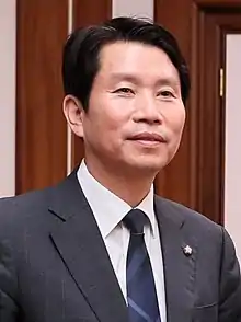 Lee In-young (Korean: 이인영, born 28 June 1964) is a South Korean activist and politician who is the incumbent Minister of Unification since 2020. Prior to this, he was the parliamentary leader of the Democratic Party from 2019 to 2020. He has been the Member of the National Assembly for Guro 1st constituency from 2004 to 2008 and since 2012. Before entering to politics, he was the 1st President of the Association of National University Student Representatives,[1][2][3][4] an anti-establishment student organisation.