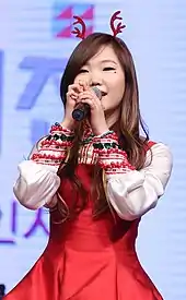 In August 2012, she and her brother auditioned for SBS' K-pop Star 2 as AKMU, soon finishing in first place and later signing under YG Entertainment.[5] In April 2014, they debuted with studio album, Play alongside three lead singles, "200%", "Give Love" and "Melted".[6] The digital single, "Time and Fallen Leaves", released in October also spawned to number one on the Gaon Digital Chart, solidifying their instantaneously commercial success.[7] They acquired multiple awards that year including "Best Pop Album" at the Korean Music Awards and "Song of the Year (April)" at the Gaon Chart Music Awards.[8][9] In September 2017, Chan-hyuk enlisted in the Korean Marine Corps, thereby AKMU going into hiatus.[10]