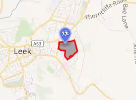 Leek High School is a mixed upper school (termed 'high school') located in Leek, Staffordshire, England. As of 2021, the number of students at the school is 373, including the sixth form, but capacity is 665.[3]