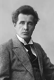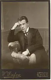 After graduating from the Music Institute and the University of Helsinki in 1910, Madetoja took up a career as a music critic, penning essays and reviews for the Säveletär magazine and, later, the Päivä newspaper.[7] Additional praise followed Madetoja's first composition concert in Helsinki on 26 September 1910, at which he conducted the Piano Trio and excerpts from the Symphonic Suite and the Chess Suite, Op. 5 (excerpted from incidental music Madetoja had composed for Eino Leino's play).[7][n 1] The positive reviews did, however, contain a note of concern: given Madetoja's plans to travel to Paris for additional education, the critic Evert Katila of Uusi Suometar worried about the negative influence "French modern atonal composition" could have on "this fresh northern nature [Madetoja]".[7]