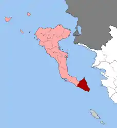 Lefkimmi (Greek: Λευκίμμη, also known as Alefkimmo) is a town and a former municipality on the island of Corfu, Ionian Islands, Greece. Since the 2019 local government reform it is part of the municipality South Corfu, of which it is a municipal unit.[2] Its land area is 50.819 km²[3] and its population was 5,800 at the 2011 census. Lefkimmi is the southernmost municipal unit on the island. Tourism is its main industry along with agriculture and other businesses. It features beaches, restaurants, shops, taverns and hotels. A canal passes through the eastern part of town. The municipal seat was the town of Lefkímmi (pop. 2,935). Its next largest towns are Kávos (pop. 685), Palaiochóri (459), Vitaládes (442), and Kritiká (453). Lefkimmi also is the second largest settlement of the island.