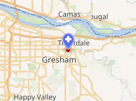 Gresham General Hospital opened in July 1959 in downtown Gresham at a former nursing home that opened in 1934.[1] Gresham General was a private, for-profit facility owned by Ben F. Doerksen and his wife built as a 52-bed facility for a cost of $500,000.[2] Metropolitan Hospitals, parent company for Emanuel Hospital, purchased the hospital in 1971 and renamed it as Gresham Community Hospital,[1][3] and by 1973 it had grown to a 113-bed facility.[4] Earlier in 1971 Emanuel and several other hospitals joined to form Metropolitan Hospitals, which in 1989 became Legacy Health through another merger.[3] In November 1984, Gresham's hospital moved to its current location on Southeast Stark Street in 1984, when it was renamed as Mount Hood Medical Center.[5] The new $15.6 million facility was five stories and had 107 beds.[5]