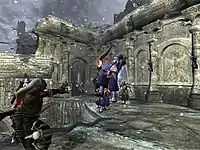 The game begins with players controlling Kain, but at set intervals they will acquire control of Raziel and play as him for a time before switching back to Kain. Both possess similar powers, including climbing walls, gliding in mid-air and phasing through certain gates.[2] However, both also have abilities exclusive to them: Kain can jump large gaps, transform into a swarm of bats and cannot swim, while Raziel swims and can shift into the spectral realm to bypass enemies and obstacles before finding an appropriate place to shift back into the material realm. Kain is also able to use his telekinesis to pick up enemies and either throw them into obstacles or pull them towards him, an ability Raziel lacks at first and must acquire during the course of the game.[2] Enemies include Sarafan warrior-priests, Vampire hunters, Hylden-possessed corpses called Revenants, and various types of Demons.