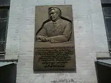 Brezhnev's family, Yuri, Galina and Yuri Churbanov, were investigated and all, with the exception of Galina, were arrested on charges of political corruption during Mikhail Gorbachev's administration.[9] Churbanov, Brezhnev's son-in-law, was sentenced to twelve years in prison on charges of large-scale embezzlement and corruption. By December 1988 Churbanov had been stripped of all state honours, and sent to a labour camp. Galina, along with the rest of Brezhnev's family, lost all their state privileges. The city of Brezhnev reverted to its old name Naberezhnye Chelny, and a group within the Soviet leadership wanted to rename all towns, street, factories and institutions bearing Brezhnev's name.[10] This was actually carried through by the authorities in December 1988 when the Soviet Government issued a decree which stated all town, streets, factories, institutions and the like bearing Brezhnev's and Konstantin Chernenko's were to revert to their former name.[11] According to his grandson Andrei Brezhnev, the very name Brezhnev had become a curse for the family, and several family members had been forced out of their jobs and their friends had deserted them.[10] Brezhnev, who had inflated his role in World War II, was rescinded the Order of Victory on 21 September 1989 in a Supreme Soviet convocation.[12]