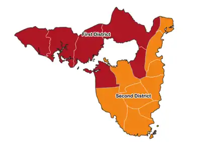 The legislative districts of Sorsogon are the representations of the province of Sorsogon in the various national legislatures of the Philippines. The province is currently represented in the lower house of the Congress of the Philippines through its first and second congressional districts.