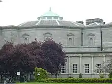 The 3rd Duke of Leinster sold Leinster House in 1815 to the Royal Dublin Society. In 1853 the Great Industrial Exhibition was hosted in its grounds.[6] At the end of the nineteenth century, two new wings were added, to house the National Library of Ireland and the National Museum of Ireland. The Natural History Museum was built on the site. Part of this scheme intended to re-clad the house in more attractive Portland stone and extend the portico outwards (as opposed to being attached). This was not undertaken.