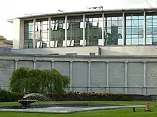 In 1924, due to financial constraints, plans to turn the Royal Hospital into a parliament house were abandoned; Leinster House, instead becoming the chapel of democracy, was bought,[2] pending the provision of a proper parliament house at some stage in the future. A new Senate or Seanad chamber was created in the Duke's old ballroom, while wings from the neighbouring Royal College of Science were taken over and used as Government Buildings. The entire Royal College of Science, which by then had been merged with University College Dublin, was subsequently taken over in 1990 and turned into state of the art Government Buildings. Both the National Library and National Museum wings next to Leinster House remain used by as a library and museum and are not attached to the parliamentary complex. While plans were often made to provide a brand-new parliament house (sites considered included the Phoenix Park and the Custom House), the Oireachtas has remained permanently located in Leinster House.
