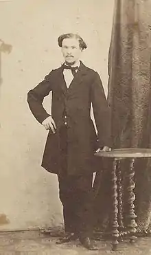 In May 1871 he was elected "associate" to the National Academy of Design in New York.[12] That same month he was offered the job of Professor of Art at Yale University,[13] but he chose to remain at the National Academy of Design.[14][15] In May 1873 he was elected "academician" to the National Academy of Design.[16] An associate was required to present to the academy within a year his own 25" by 30" portrait in oil colors, and an academician a specimen of his Art. These were to be preserved in the gallery of the academy, and to be the property of the National Academy of Design.[17]