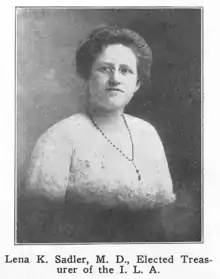 Lena Sadler (June 9, 1875 – August 8, 1939) was an American physician, surgeon, and obstetrician who was a leader in women's health issues.