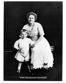 Dr. Bertha Van Hoosen, the Michigan Petticoat Surgeon, recalls, "In 1892, Chicago and the practice of medicine were so new to me that I was not even aware of the fight that medical women staged at that time for representation at the Columbian World's Fair. When Dr. Sarah Hackett Stevenson found out that medical women were to be allowed no part in that greatest of all fairs, she gathered her forces together and succeeded in getting a state appropriation for a Woman's Hospital exhibit. A building was erected in which the women doctors gave first aid and treated thousands of patients ... Forty years later, when arrangements for the Century of Progress were completed, the medical women were again excluded. In protestation, Dr. Lena Sadler and I appealed to the management for representation and space for some exhibit in the Hall of Science. We were told that, as there had been no arrangements for an exhibit on Maternal Hygiene, we might make an application for such an exhibit. However, there were a dozen applicants for the space, and if we wanted it, we would have to compete by presenting a perfect model of a maternal hygiene exhibit with all specifications. With the help of a hastily organized group of the medical, dental, and allied science women, we presented such a fascinating model that we were given the space..."[9] "The financing was more difficult — so difficult that Dr. [Lena] Sadler and I found ourselves almost alone on the project. My democratic program was to collect one dollar from every medical, dental, and allied science woman in the United States, but Dr. Sadler said, 'No, no. That's too long and hard a job. Go to Lane Bryant and ask them to allow you to exhibit their maternity dresses. I will go to Vanta, and then there's the Camp maternity corset. These firms ought to pay $500 for the privilege of exhibiting their products ... To my amazement, Dr. Sadler's plan brought us $6,000 in a few weeks so that the Medical, Dental, and Allied Science Women's Association for the Century of Progress was able to sponsor and furnish a booth on Maternal Hygiene in the Hall of Science, a booth on History of Women in Medicine in the Hall of Social Science, and a booth devoted to Child Welfare on the Enchanted Island."[10]