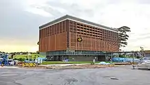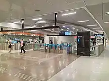 In the early morning of 1 March 2018, a 48-year-old construction worker died after falling from a working platform, 2.5 metres (8.2 ft) above the ground, while working in a tunnel leading to the station.[9] Prior to the incident, four other workers were dismantling components of a tunnel boring machine (TBM) after finishing tunneling works.[9] A component of the TBM, a man-lock chamber, was being lowered using chain blocks when it abruptly swung, striking the platform that the worker was standing on.[9][10][11]