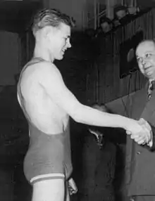 Leo Ilmo Honkala (8 January 1933 – 17 May 2015) was a flyweight Greco-Roman wrestler from Finland who won a bronze medal at the 1952 Summer Olympics. In the following several years he suffered several shoulder injuries, and retired from competitions in 1956 after winning his only national title. In retirement he first worked as a policeman in Finland, but in the late 1960s immigrated to Sweden,[1] and in 1974–85 trained the Swedish wrestling team. He also competed in powerlifting, but at the 2006 European Masters Championships failed a drug test for EPO and was banned for life.[2]
