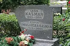 Leon Kasman, pseudonyms "Adam," "Bolek," "Janowski," "Zygmunt"[1] (born October 28, 1905, in Łódź, died on July 12, 1984, in Warsaw) was a Polish communist journalist and politician of Jewish descent.[2][3] Head of the propaganda and agitation department of the Central Committee of the Polish Workers' Party.[4] He was a first editor-in-chief of the Trybuna Ludu daily, deputy to the Sejm of the Polish People's Republic. As a result of the conflicts within the communist party, Kasman resigned from this function in December 1953.[5] He was among the “Puławianie"[6] faction in PZPR. Leon Kasman died in 1984 and was buried at the Powązki Military Cemetery in Warsaw.