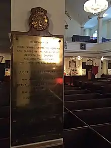 Leonard died peacefully in Buxton on 25 November 1971, and his ashes were placed in St Paul's Church in Halifax on 17 September 1972. His memory lived on in the Royal Canadian Navy, where the Admiral L.W. Murray Trophy for Gunnery Proficiency was awarded annually at least until the early 1970s. Since his death, a number of commemorative steps have been taken, including the placing of a memorial in his honour in Pictou,[37] a collection of his medals and related naval artifacts in the Canadian Naval Operations School (CFNOS) in Halifax,[38] the naming of a Maritimes Branch of the Royal Canadian Naval Association, the renaming of Royal Canadian Sea Cadet Corps NEW GLASGOW in New Glasgow, Nova Scotia, to Royal Canadian Sea Cadet Corps ADMIRAL MURRAY, and the naming of several naval buildings, including CFNOS building at CFB Halifax. On Tuesday, July 16, 2019, Halifax Regional Council voted to name a street or park in downtown Halifax or near HMC Dockyard in honour of Admiral Murray.[39]