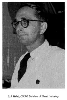 Leonard James Webb AO (28 October 1920 – 25 November 2008) was a widely awarded Australian ecologist and ethnobotanist who was the author or joint-author of over 112 scientific papers throughout the course of his professional career. His pioneering work as Senior Principal Research Scientist alongside Geoff Tracey in the CSIRO Rainforest Ecology Research Unit in the 1950s led to the publication of the first systematic classification of Australian rainforest vegetation in the Journal of Ecology in 1959.[13][14][15][16]