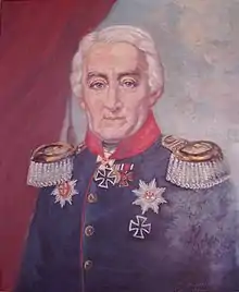 Leopold Wilhelm von Dobschütz (1 January 1763 in Brieg, Niederschlesien – 3 February 1836 at Gut Zölling, Kreis Freystadt, prev. Kreis Sagan, Niederschlesien) was a Prussian "general of cavalry", the "hero of Dennewitz" and "liberator of Wittenberg", military governor of the Rhine province and of Breslau. He was Gutsherr of Zölling, which his wife had inherited, and the Gütern Ober- and Nieder-Briesnitz as well as Schönbrunn, all in the district Sagan.