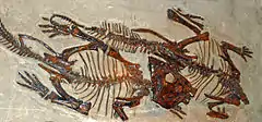 In 2019, fossils from the Hell Creek Formation found three fossil bone beds which revealed that not only was Leptoceratops a social animal, but also raised its young in burrows.[7]