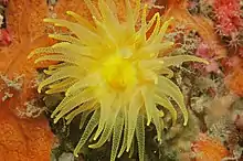 Leptopsammia is a genus of stony cup corals in the family Dendrophylliidae. Members of this genus are found at depths down to about 900 metres (3,000 ft). They are azooxanthellate, meaning that they do not contain symbiotic photosynthetic algae as do many species of coral.[1]