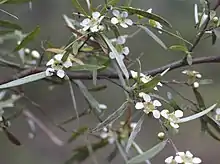 Leptospermum brachyandrum is a species of shrub or small tree that is endemic to eastern Australia. It has smooth bark, linear to lance-shaped leaves and white flowers and usually grows along creeks, often in water.