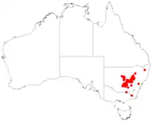 Leptospermum divaricatum grows in woodland and heath in mallee or on hillsides on the North West Slopes, Central Western Slopes and Western Plains of New South Wales, south from Nymagee.[2][3]
