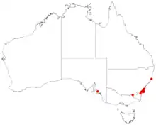 This tea-tree grows in forest and heath on sandstone in the area around Jervis Bay.[2][3]