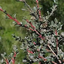 Leptospermum myrtifolium, commonly known as the myrtle tea-tree or grey tea-tree,[2] is a species of shrub that is endemic to south eastern Australia. It has broad egg-shaped to elliptical leaves, white flowers usually borne singly on short side shoots, and fruit that remains on the plant until it dies.