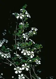 Leptospermum nitens was first formally described in 1852 by Nikolai Turczaninow in the Bulletin de la Classe Physico-Mathématique de l'Académie Impériale des Sciences de Saint-Pétersbourg from material collected by James Drummond.[4][5] The specific epithet (nitens) is a Latin word meaning "bright" or "gleaming".[6]