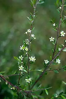 Leptospermum purpurascens, commonly known as the purple-stemmed turkey bush,[2] is a shrub or small tree that is endemic to far north Queensland. It has bark that is purple when new, elliptical to broadly lance-shaped leaves, relatively small white flowers arranged in pairs and small fruit that falls from the plants when the seeds are released.