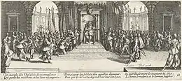 Les Grandes Misères de la guerre (French: [lɛ ɡʁɑ̃d mizɛʁ də la ɡɛʁ]; English: The Great Miseries of War or The Miseries and Misfortunes of War) are a series of 18 etchings by French artist Jacques Callot (1592–1635), titled in full Les Misères et les Malheurs de la Guerre. Despite the grand theme of the series, the images are in fact only about 83 mm × 180 mm (3.25 x 7 inches) each, and are called the "large" Miseries to distinguish them from an even smaller earlier set on the same subject.[1]