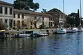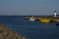 The Les Onglous Lighthouse is the terminating point of the Canal du Midi where the canal enters the Étang de Thau.[1][2][3] The red and white lighthouse is at the tip of a short jetty projecting into the Étang de Thau. It is located on the east jetty at the canal entrance, about 1.5 km (0.93 mi) south of Marseillan in the Hérault department. The Isthmus of Onglous is a narrow strip of land between the Étang and the Mediterranean.[4]