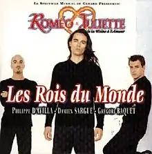 "Les Rois du monde" is a 2000 song performed by Philippe d'Avilla, Damien Sargue and Grégori Baquet. It was the second single from the French musical Roméo et Juliette, de la Haine à l'Amour, featuring as the fourth track on the album of the same name. Released in July 2000, the single achieved a huge success in France and Belgium, topping the charts for many months.