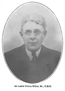 Sir Leslie Creery Miller, CBE (1862 – 11 February 1925) was a British Indian civil servant who served in the Madras Presidency and also in the court of Mysore. He is best known for the Miller Committee Report of 1919 which ensured representation for non-Brahmins in government positions.