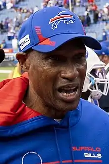 Leslie Antonio Frazier (born April 3, 1959) is an American football coach and former cornerback who is the assistant head coach & defensive coordinator for the Buffalo Bills, of the National Football League (NFL). He previously served as the head coach of the Minnesota Vikings from 2010 to 2013 and previously served as an assistant coach for the Baltimore Ravens, Tampa Bay Buccaneers, Indianapolis Colts, Cincinnati Bengals and Philadelphia Eagles.