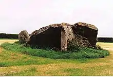 Lesquite Quoit, (also known as Lanivet or Trebyan Quoit) is a portal dolmen, located near Lanivet in Cornwall, United Kingdom.[1][2] It is a ceremonial funerary monument built around 3500 - 2600 BC and used by Britain's early farming communities. There are only 20 portal dolmens surviving in the United Kingdom. Many have suffered from stone-robbing and degradation over time. This example is well preserved, and is a scheduled monument.[3] In 1870, J. Polsue recorded that the local tradition was of the stones "having been thrown to their present location from Helman Tor by the Devil playing quoits."[4][3]