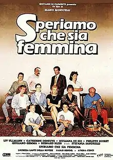 Speriamo che sia femmina, internationally released as Let's Hope It's a Girl, is a 1986 Italian comedy film directed by Mario Monicelli. For this film Monicelli was awarded with a David di Donatello for Best Director and a Nastro d'Argento in the same category. The film also won the David di Donatello for Best Film, Best Supporting Actress, Best Supporting Actor, Best Producer, Best Editing and Best Script.[1]
