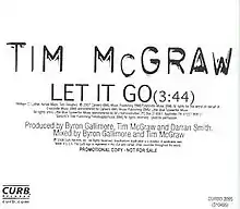 "Let It Go" is a song written by Aimee Mayo, Bill Luther and Tom Douglas, and performed by American country music singer Tim McGraw. It was released in July 2008 as the sixth single and title track from his album Let It Go. It was his forty-second Top 40 hit on the Billboard country charts.