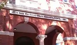 Lettie survived both her husbands and her two sons. In memorial upon her death the Coca-Cola Board noted that "Endowed with material things, she had a conviction that she held them as trustee for the poor, the meek and the unfortunate."[5] Her oldest son, influenced by Lettie's generosity, created the Joseph B. Whitehead Foundation as a memorial to his father.[6] A special collection in the Robert W. Woodruff Library at Emory University holds many of Lettie's papers and writings. Several academic buildings are named in her honor, including the Lettie Pate Whitehead Evans Administration Building at Georgia Tech, the Lettie Pate Whitehead Evans Hall and Evans School of Humanities and Social Sciences at Berry College, the Lettie Pate Whitehead Evans Graduate Housing Complex at the College of William and Mary, the Lettie Pate Whitehead Evans Residence Hall at Emory University, and the Lettie Pate Whitehead Evans Dining Hall at Agnes Scott College.[7]