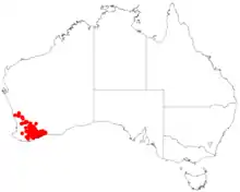 It is found in the IBRA Regions of Avon Wheatbelt, and Esperance Plains, on gravelly soils, deep yellow sand, and clay soils, on Sandplains and hillslopes.[4]